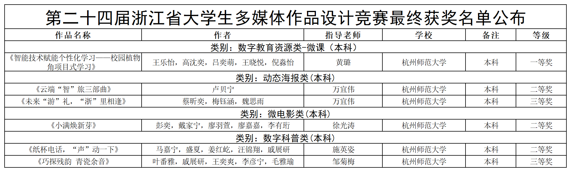 2025年12月7日,由浙江省大学生科技竞赛委员会主办的浙江省第二十四届大学生多媒体作品设计竞赛决赛落下帷幕。无码成人影片 6件作品进入决赛,获得省一等奖1项,省二等奖3项,省三等奖2项。