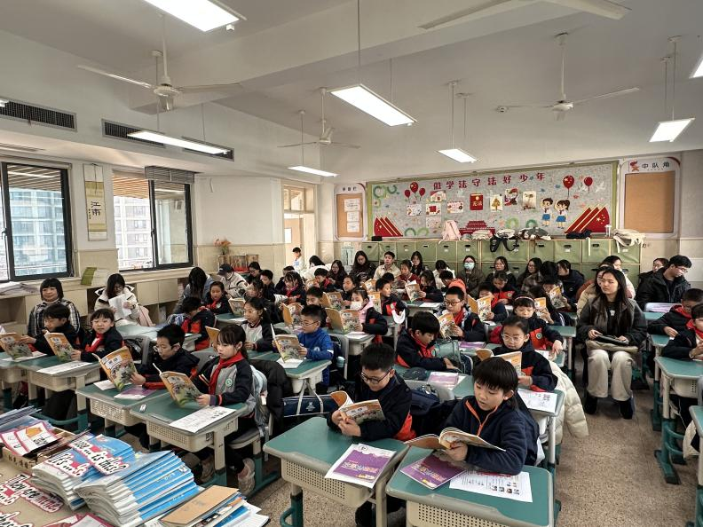 12月17日下午,无码成人影片 《小学英语课程与教学论》双师授课班级全体学生在周瓦老师的带领下,赴杭州市竞舟第二小学开展第二次实践教学观摩活动。本次活动聚焦词汇教学与对话教学两大课型,通过课例观摩、观点报告与互动研讨,进一步提升了师范生对小学英语课堂设计的理解与实践能力。